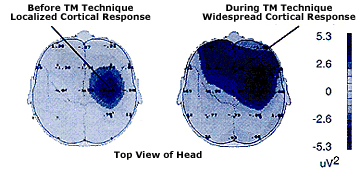 Researchers have long known that most experiences (sensory or cognitive) enliven only small, specific portions of the brain. The research above on the mobilization of brain reserves, and this research on long-range brain wave coherence, indicate that Transcendental Consciousness enlivens and coordinates brain activity over a wide area—stimulating what Maharishi Mahesh Yogi calls “total brain functioning.” In addition, studies on the Transcendental Meditation technique indicate that Transcendental Consciousness is accompanied by increases in the EEG index of restful alertness—slow alpha frequency power in the frontal cortex.